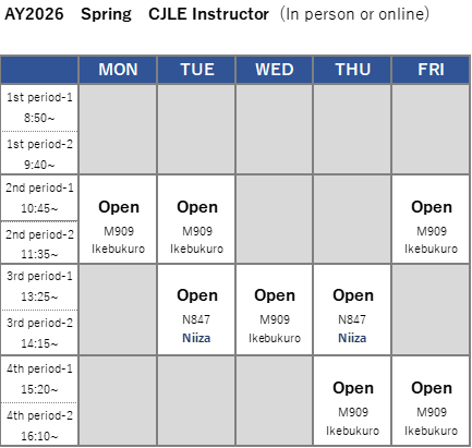Please email CJLE at cjle@rikkyo.ac.jp to make an appointment on the day. Please contact us well in advance as it takes time to adjust.
